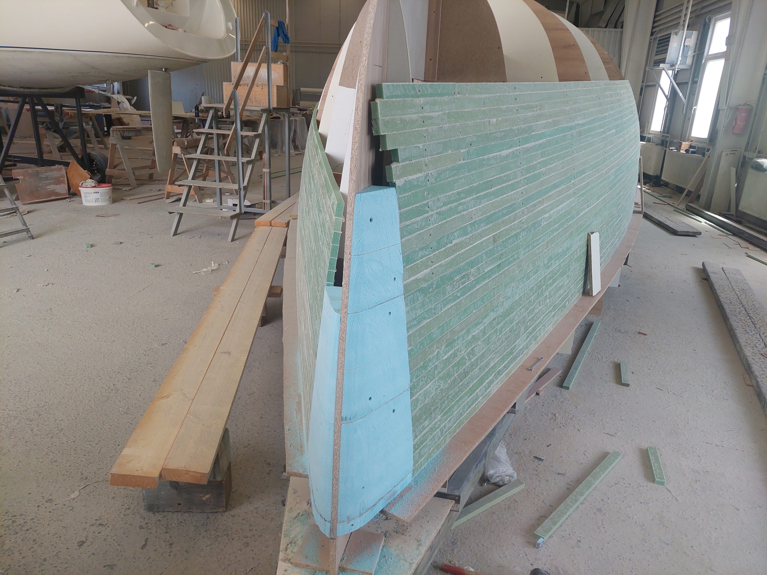 Bővebben…: A palánkozás sem kevésbé izgalmas feladat!A palánkozás sem kevésbé izgalmas feladat! Ezt a módszert először a Dolphin 28-as hajónk ősmintájánál használtuk, az ősminta később „HATODIK”néven hajóvá vált, amivel Magyar Bajnokságot nyertünk! A hajó értelemszerűen nehezebb volt a normál 28-asokhoz képest, de Farki volt a kormányos, úgyhogy jól mentünk. A STRONG PLANC Technológiát fordítottuk át a mi lehetőségeinknek megfelelően, kiválóan működött…