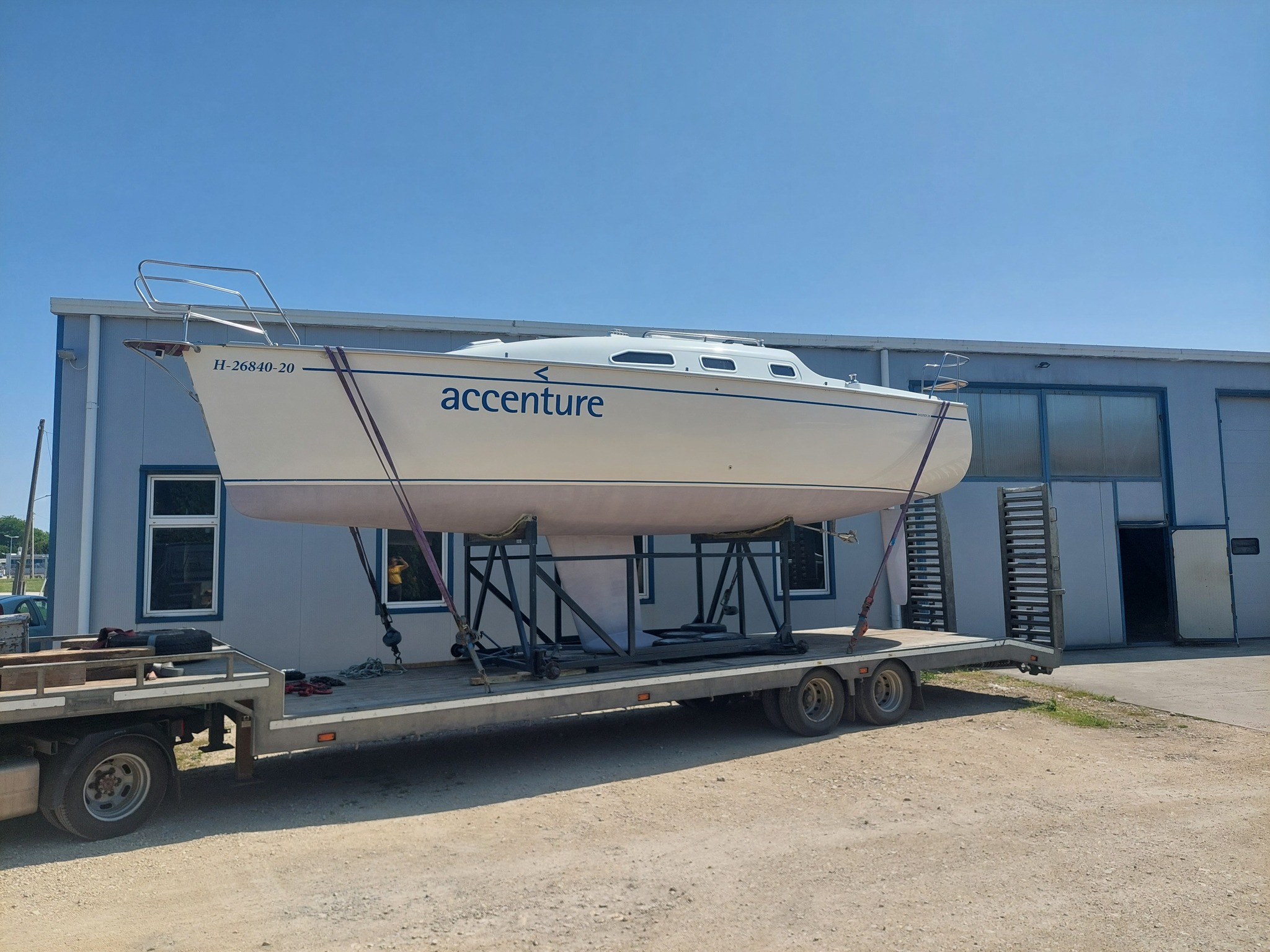 Egy régebbi, számomra kedves hajóBővebben…: Egy régebbi, számomra kedves hajóEgy régebbi, számomra kedves hajó érkezett tamási műhelyünkbe felújításra. Ez volt az utolsó Dolphin 28-asom, „ BUKOVINA” volt a neve, (van aki tudja a Kárpátok melyik oldalán van ez a vidék). Kékszalagon 92 indulóból lettünk negyedikek osztályunkban, és a befutónál a Paksiak szóltak hogy pakoljunk ki a hajóból. Azóta is ők használják, megelégedéssel!